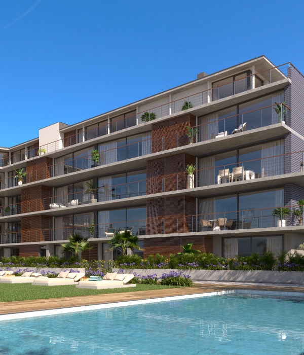 El edificio está compuesto de planta baja, tres alturas y planta ático. De arquitectura moderna, presenta una imagen elegante y luminosa, con grandes ventanales y terrazas que se abren al paisaje costero con espléndidas vistas al mar.